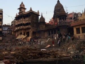 Manikarnika Ghat: a body awaits cremation.